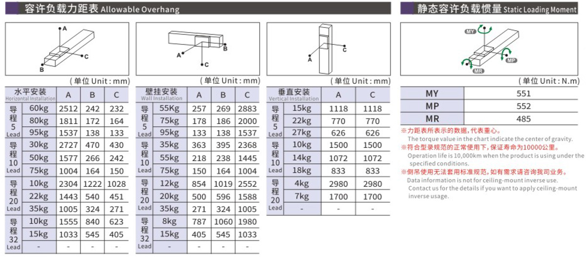容许负载力距表